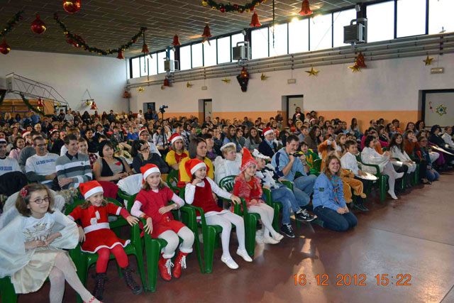 La ora 16 au urcat pe scena elevii claselor de gimnaziu, care au prezentat un spectacol de muzica si de poezie în limba engleza, coordonati de profesoara Violeta Roman, si în limba italiana, coordonati de profesoara Delia Indig. Apoi au trecut la un repertoriu de colinde românesti, pregatite de profesoara Ileana Balota.