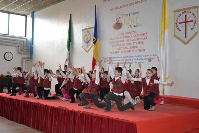 “Luna este martie considerata de obicei “Luna Femeii”. Elevii clasei a II-a de la Liceul “Don Orione” din Oradea au transformat-o în LUNA FAMILIEI. Daca în data de 6 martie au fost asteptate mamicile si bunicutele acestor copii minunati în sala festiva a liceului cu multe surprize, iata ca azi, 19 martie 2013 au fost invitati taticii si bunicii pentru a li se spune un sincer LA MULTI ANI!