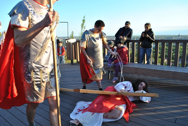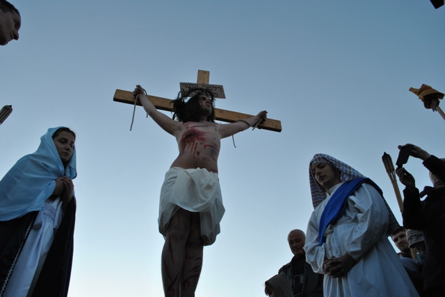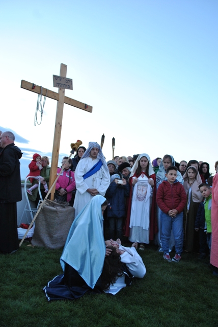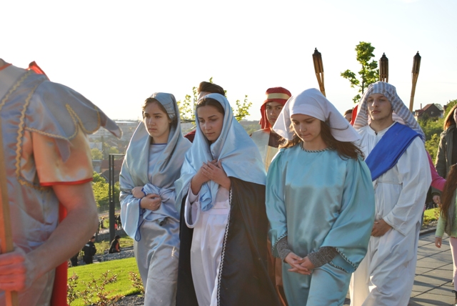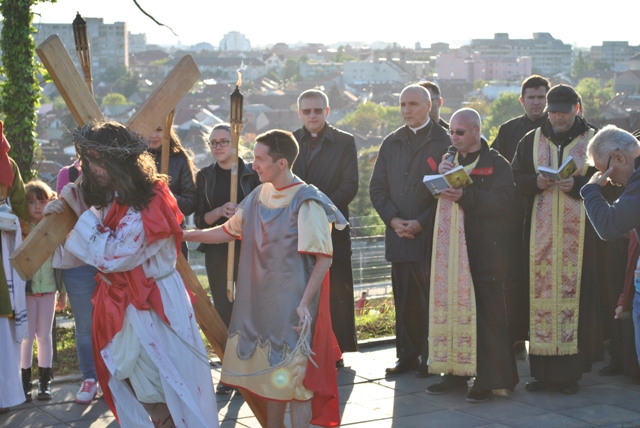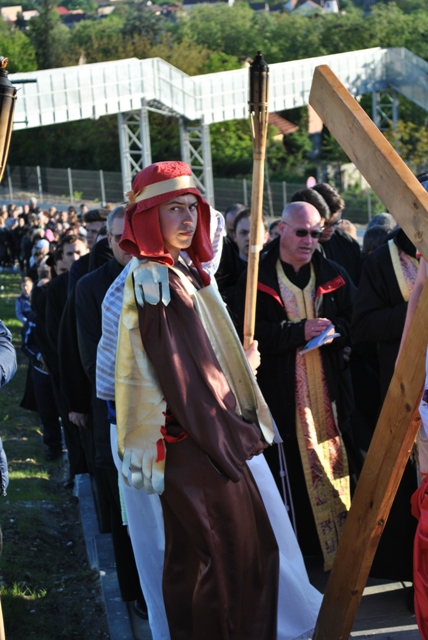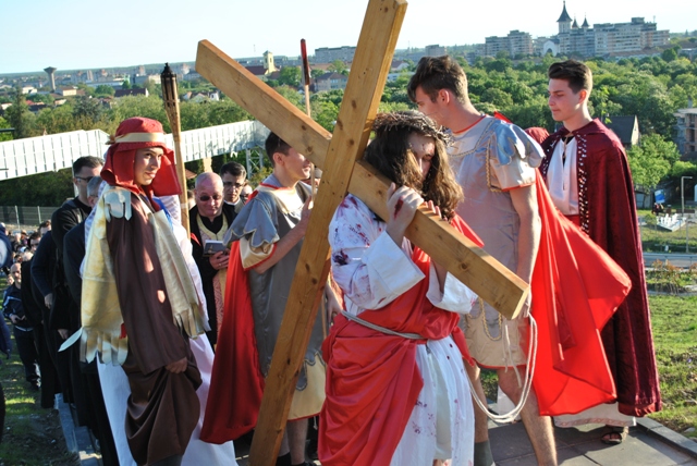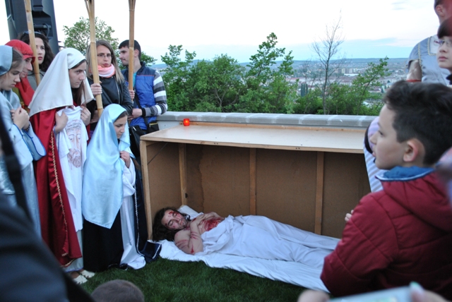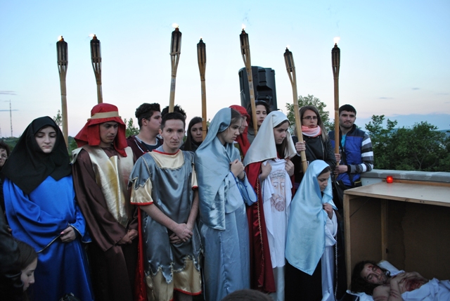 Acest moment de rugaciune si pietate, a fost realizat de catre tinerii din Grupul „Allegria” ai Parohiei Franciscane „Maica Domnului” din Oradea, care au interpretat personajele de pe Drumul Crucii.