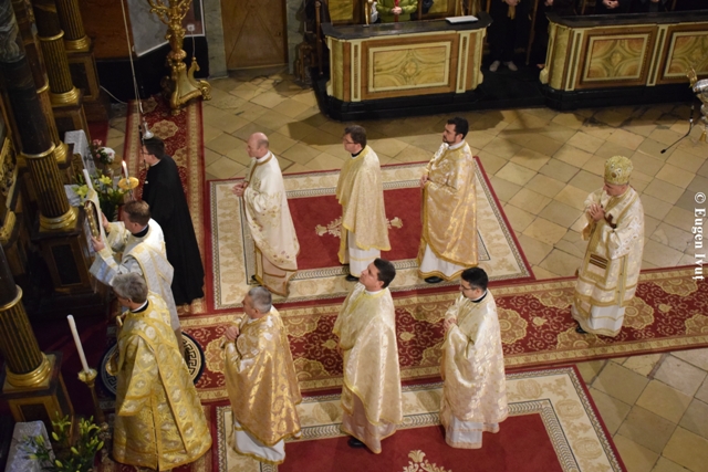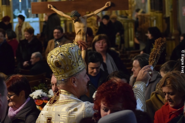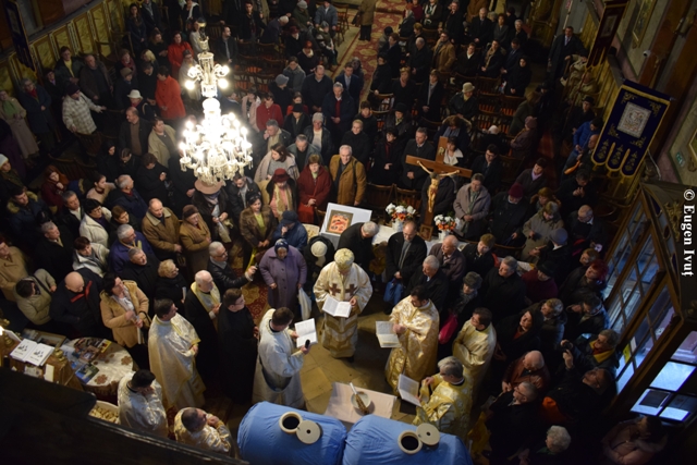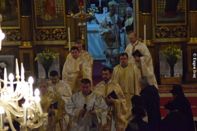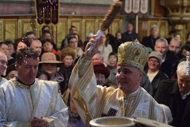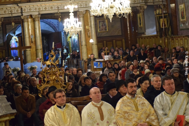 La Catedrala „Sfântul Nicolae”, Sfânta si dumnezeiasca Liturghie a fost celebrata de catre Preasfintitul Parinte Virgil, episcopul greco-catolic de Oradea, alaturi de un sobor de preoti.