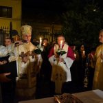 La orele 00.00 credinciosii au fost chemati sa primeasca lumina, semn al Luminii care este Isus Cristos, apoi soborul de preoti alaturi de credinciosi au înconjurat Biserica cântând imnul biruintei asupra mortii „Cristos a înviat din morti, cu moartea pe moarte calcând si celor din morminte viata daruindu-le”.