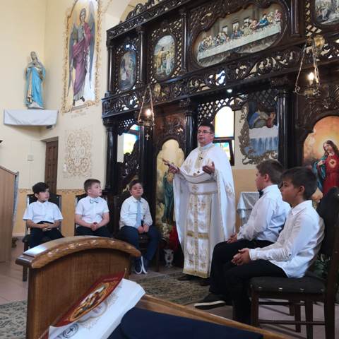 “În Duminica a 6-a dupa Rusalii, la Biserica Greco-Catolica cu hramul „Sfintii Arhangheli Mihail si Gavril” din Marghita, în cadrul Sfintei Liturghii oficiate de pr. paroh Lit Demian Gheorghe împreuna cu pr. Cristian Balanean, a avut loc Prima Sfânta Împartasanie Solemna pentru sase copii cu vârste între 8 si 10 ani. Desi fiecare Sfânta Liturghie din duminicile de peste an are un grad mai ridicat de solemnitate, reamintind de Ziua Învierii Domnului, duminica din 8 iulie 2018 a avut, pentru comunitatea greco-catolica din Marghita, ceva din farmecul spiritual special al Marilor Sarbatori ale crestinatatii, reprezentând o veritabila sarbatoare a parohiei.