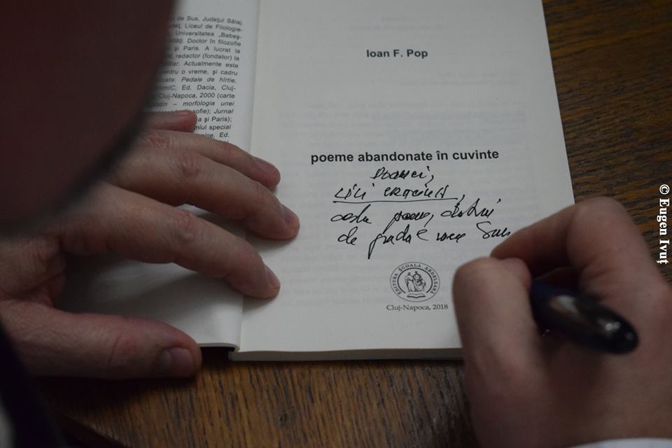 Cartea pe care o lansează cu acest prilej, Poeme abandonate în cuvinte, „spune multe despre felul cum vede autorul incursiunile scrisului poetic, multiplele sale fațete și provocări, incertitudinile și momentele de cumpănă care însoțesc parcursul vieții – continuă prelatul. Sperăm ca și pe viitor autorul să-și abandoneze preocupările spirituale doar în cuvinte lăsate în cărți… Lăsând specialiștilor plăcerea de a intra mai aplicat în complexitatea scrisului domnului Ioan F. Pop, eu vreau doar să ne bucurăm împreună de acest moment aniversar și să-i urez sărbătoritului la multe cărți și, evident, La Mulți Ani!”, a încheiat reprezentantul Episcopiei Greco-Catolice de Oradea.