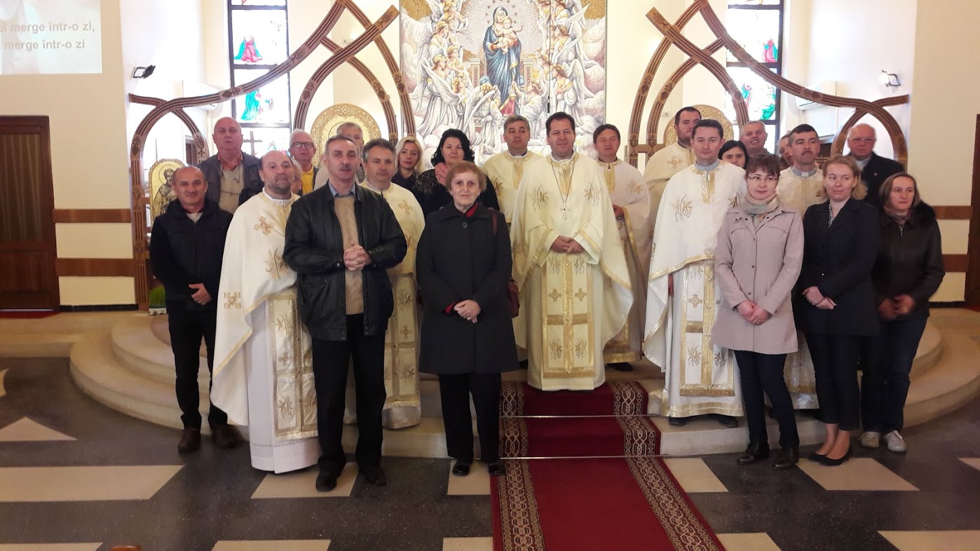 Responsabilii s-au întâlnit în 10 mai, vineri seara, la Sfânta și Dumnezeiasca Liturghie oficiată în Biserica Franciscană, așezământ religios declarat Sanctuar Eparhial. Celebrantul principal a fost părintele vicar general Mihai Vătămănelu OFMConv., alături de care au concelebrat preoții: pr. Mihai Tegzeș – responsabil Departament Familii și Adulți, pr. Daniel Bertean – Parohia Dumbrava Zalău, pr. Mirel Demian – Parohia Valea lui Mihai, pr. Alexandru Fiț – Capelan la Surorile Preasfintei Inimi a lui Isus, pr. Ioan Tătar – Protopop de Holod, pr. Zorel Zima – Protopop de Beiuș, pr. Aurel Hendea – Protopop de Tășnad. La întâlnire a participat și părintele Antoniu Chifor – Vicar cu Preoții.