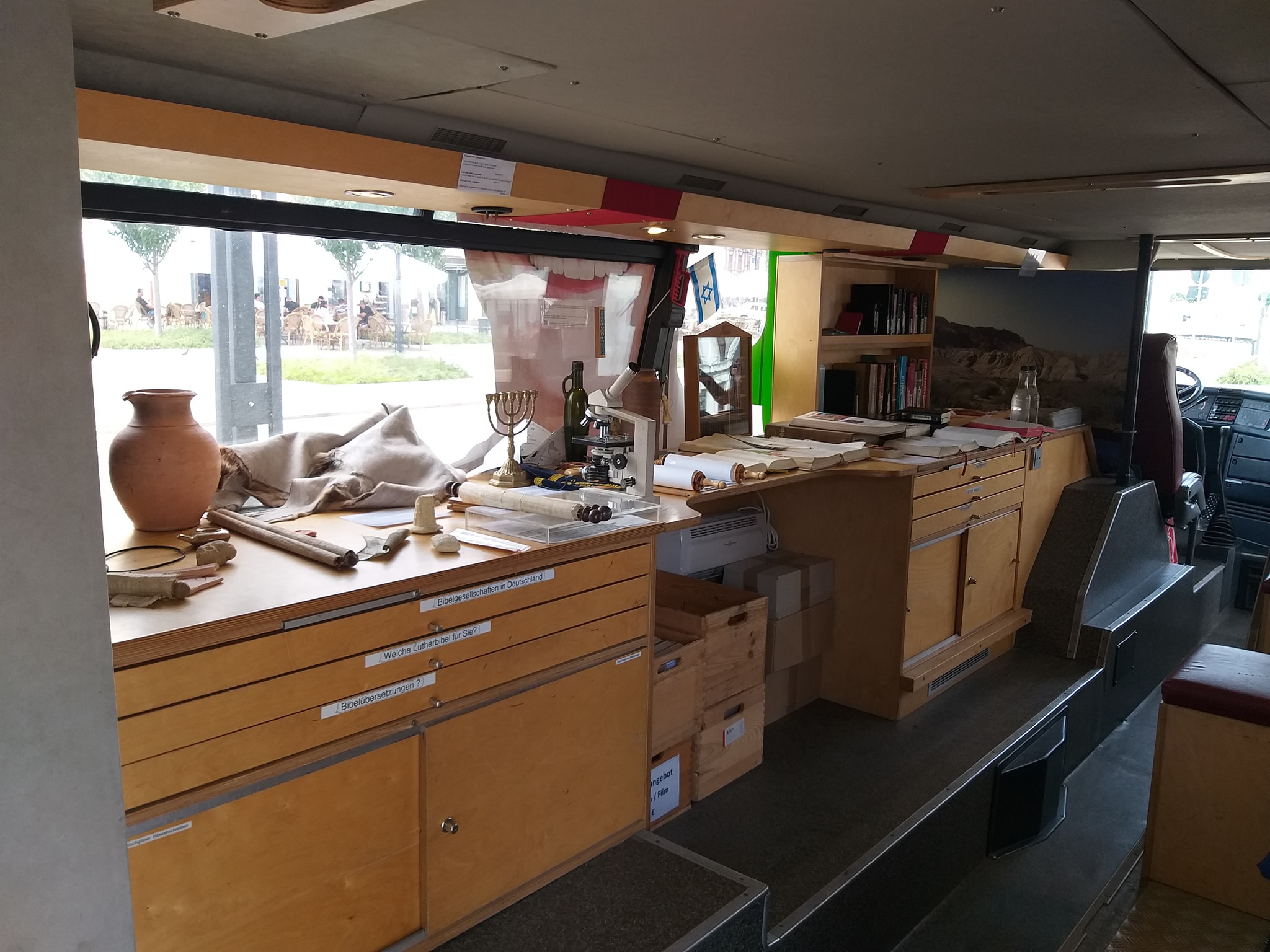 Au putut fi văzute mai multe ediții ale Sfintei Scripturi și în mai multe limbi inclusiv japoneză, aramaica siriacă, filipineză, coreană, precum și un facsimil după Biblia lui Martin Luther, de asemenea a putut fi văzută și o copie după Biblie realizată prin nanotehnologie, inventată și dezvoltată de inginerii NASA care a fost trimisă și în spațiu. Scopul acestui traseu prin diferitele țări ale autocarului Bibliei este acela de a dezvolta dialogul inter-religios și ca Mesajul lui Isus să ajungă la câți mai mulți oameni.