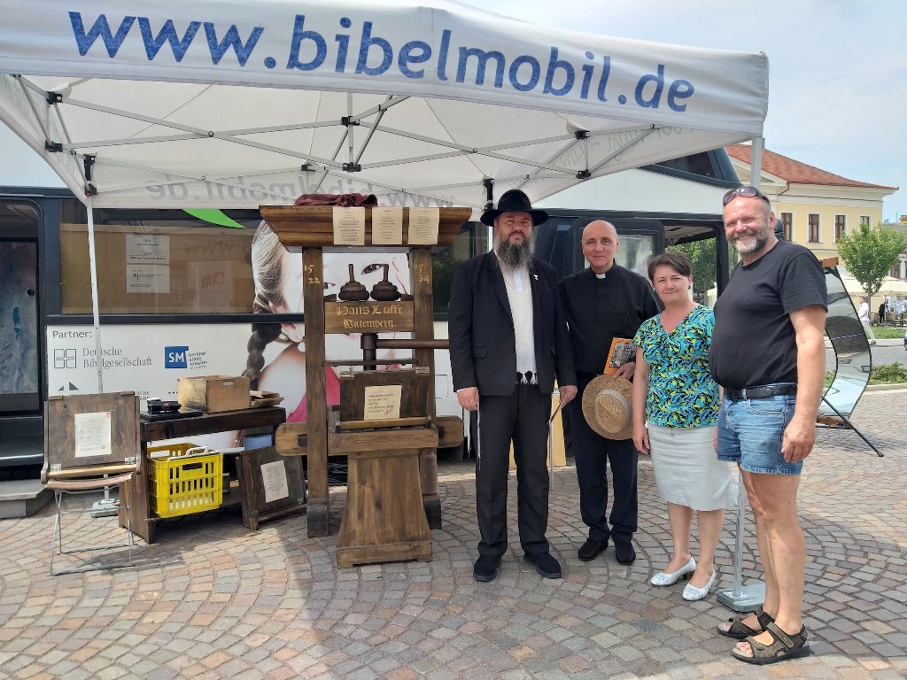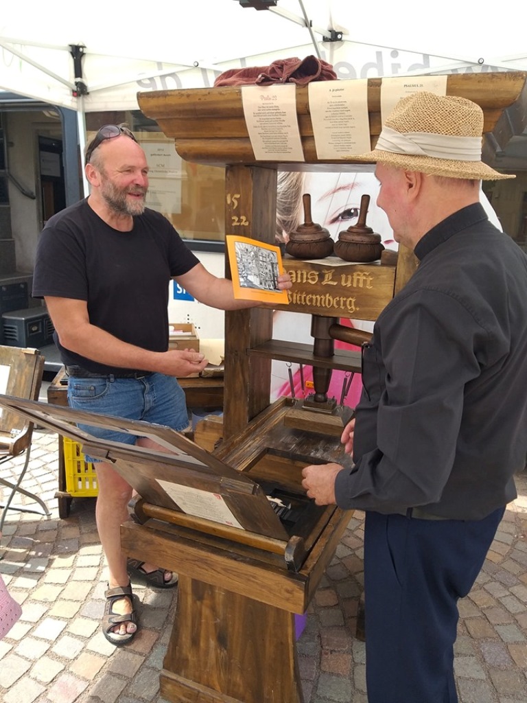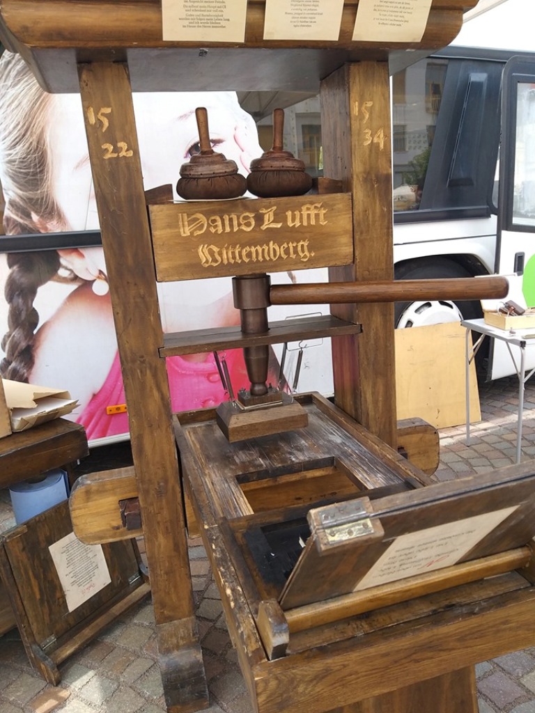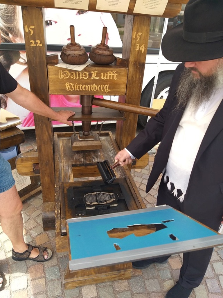 La finalul vizitei în autocarul Bibliei, fiecare a putut să-și tipărească pe o bucată de hârtie Palmul 23 în limbile română, germană și maghiară cu o tiparniță de peste 600 de ani.