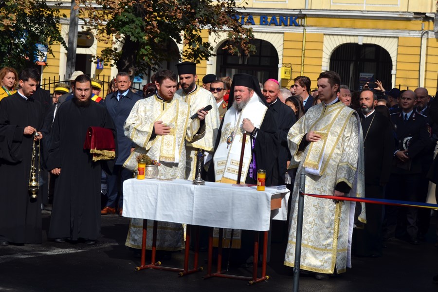 Festivitățile au început cu intonarea imnului național „Deșteaptă-te Române!”, și au continuat cu slujba de sfințire a statuii, oficiată de episcopul ortodox Sofronie Drincec.