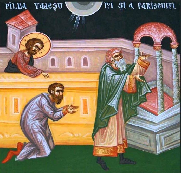 «9 A spus această parabolă unora care se credeau în sine drepţi şi-i dispreţuiau pe alţii. 10 „Doi oameni au urcat la templu ca să se roage: unul era fariseu, iar celălalt, vameş. 11 Fariseul, [stând] în picioare, se ruga în sine astfel: «Dumnezeule, îţi mulţumesc că nu sunt ca ceilalţi oameni: hrăpăreţi, nedrepţi, adulteri, sau chiar ca vameşul acesta. 12 Eu postesc de două ori pe săptămână, dau zeciuială din ceea ce câştig». 13 Vameşul, în schimb, stând departe, nici măcar nu îndrăznea să-şi ridice ochii spre cer. Îşi bătea pieptul, zicând: «Dumnezeule, îndură-te de mine păcătosul!». 14 Vă spun că a coborât la casa lui îndreptăţit mai degrabă acesta decât celălalt; căci oricine se înalţă pe sine va fi umilit, iar cel care se umileşte va fi înălţat”». (Luca 18,9-14)