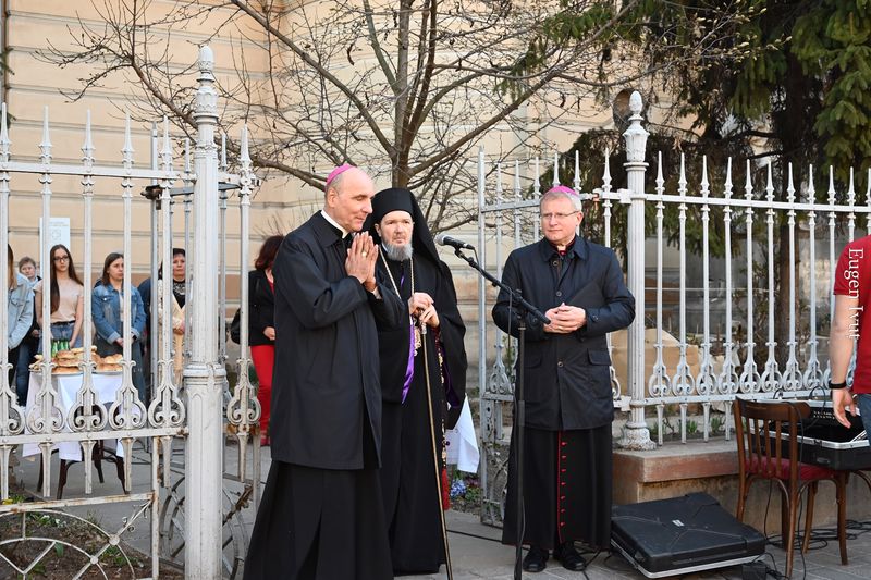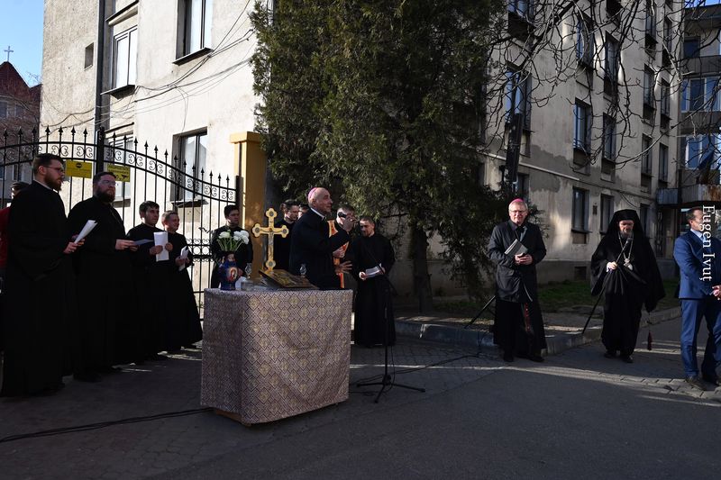 Lângă Catedrala Ortodoxă ,,Învierea Domnului” şi Biserica Seminarului Teologic Greco-Catolic ,,Sfântul Gheorghe” s-a făcut câte un popas de rugăciune. Gazdă din partea Bisericii Greco-Catolice a fost Părintele Florin Bode, paroh al Bisericii Seminarului, împreună cu Pr. rector Anton Cioba și un grup de seminariști.