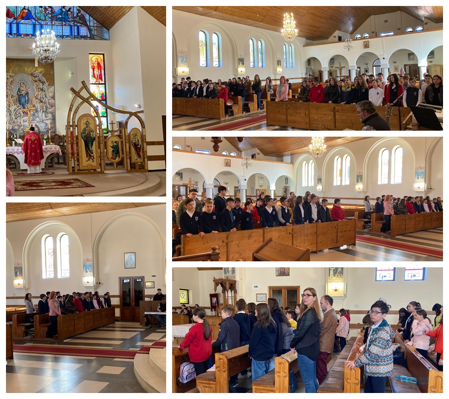 Catedra de religie împreună cu preoții spirituali au propus elevilor din clasele V-XII, prin rotație, câte o zi de pregătire spirituală pentru trăirea corespunzătoare a Sărbătorii Învierii Domnului cu tema „Căutați Împărăția lui Dumnezeu și dreptatea Lui și toate celelalte vi se vor adăuga vouă” (Matei 6,33). Astfel, în intervalul orar 9-13, elevii s-au bucurat de Sfânta Liturghie, cântec, meditație, joc, prânz împreună oferit de școală dar și de vizita PS Virgil însoțit de doamna director, întotdeauna plin de viață, cu zâmbetul larg în mijlocul copiilor noștri.