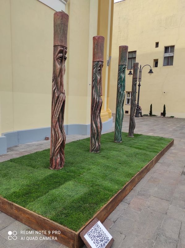 * În curtea Catedralei va putea fi vizitată expoziția de sculptură Stâlpii Cerului a artistului Horia Sabău.