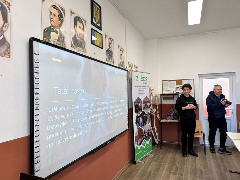 Elevilor din clasele V-VIII Alex le-a vorbit despre despre schimbările climatice, despre poluare, despre reciclare și despre cum putem, fiecare dintre noi, să ajutăm la salvarea pământului, prin activități de ecologizare. Dragoș le-a vorbit elevilor despre Creație așa cum este prezentată în Biblie și despre cum trebuie să avem grijă de tot ceea ce Dumnezeu a creat, de această „casă comună” care este planeta noastră. Activitatea s-a încheiat cu rugăciunea „Tatăl nostru” rostită împreună. A urmat o mică gustare oferită de Ziléos.