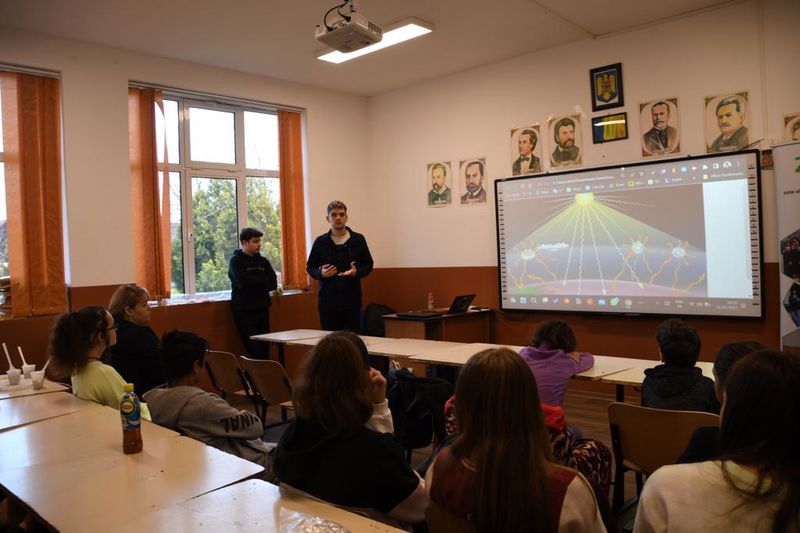 Invitat să le vorbească elevilor a fost Alex Trandafir, cercetaș în cadrul Cercetașilor Creștini Români și student la Facultate de Geografie și Management din cadrul Universității din Loughborough, Marea Britanie.