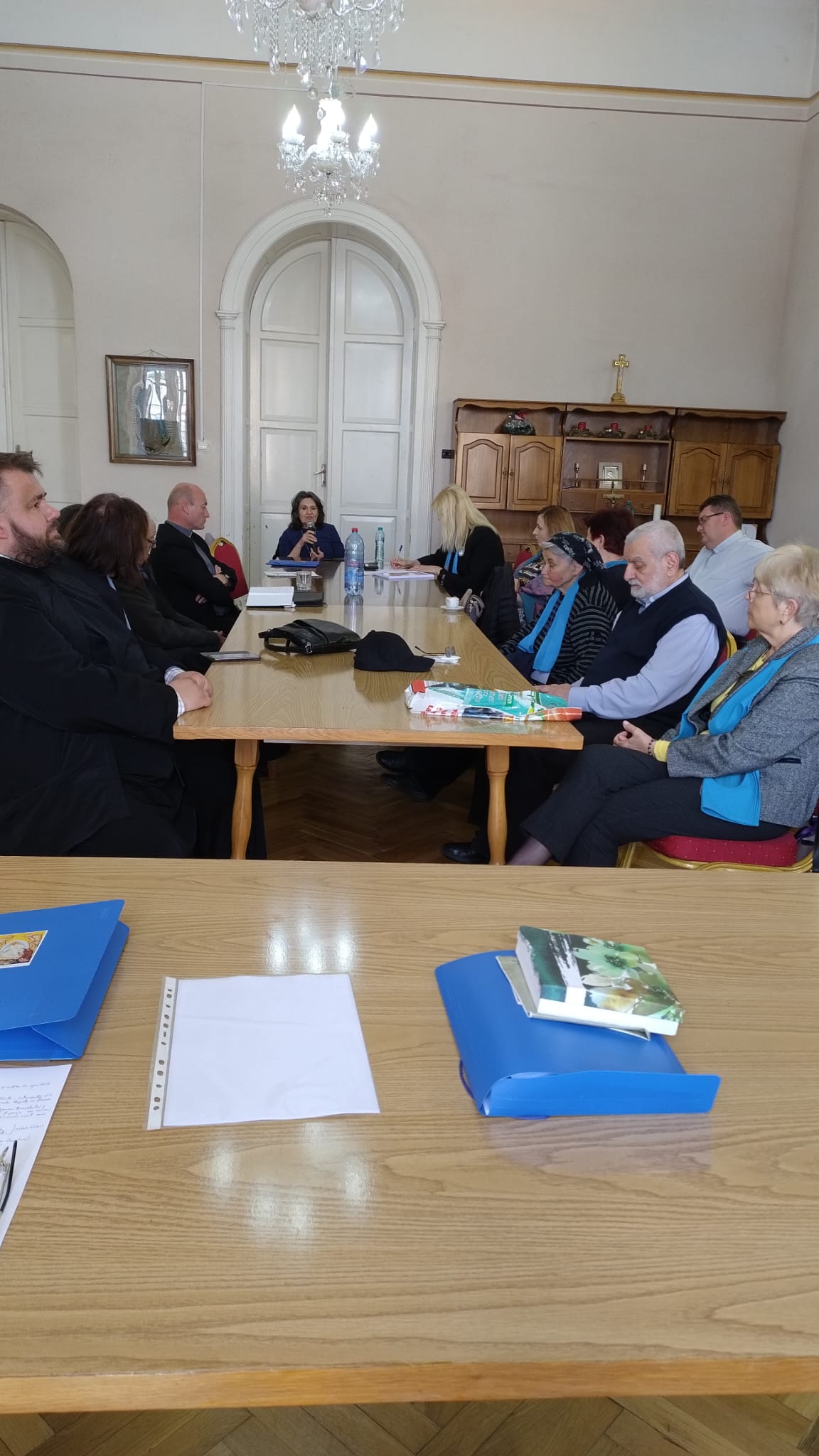 Domnul profesor Ion Dărăbăneanu, reprezentatul Parohiei Beiuş, a oferit nu doar informaţii despre activitatea mariană locală ci şi rodul muncii domniei sale( încă în desfăşurare): „Almanahul Maicii Domnului” , frumos ilustrat, care conţine sărbători şi comemorări ale Precuratei, începând cu 8 septembrie până în 25 august. A exemplificat cu fascicula „Sărbătoarea Maicii Domnului, 15 august” ce conţine capitole precum: 1. Ne aminteşte…, 2. Istorie şi Consemnare., 3. Cuvântul preotului, 4. Închinăciunea lunii august pentru Sfânta Fecioară Maria – tradiţii populare legate de Sfânta Fecioară (ex.Brâul Maicii Domnului, plante tradiţionale), 5. Cântări mariane, 6. Iconografia Maicii Domnului şi un plic pentru iconiţe, 7. Intenţii generale şi particulare ale marianistului. Se vor aduna 15 astfel de fascilule folositoare, invitând marianiştii prezenţi să îl completeze dacă vor considera că ceva s-a omis. Presfinţiei Sale Episcop Ioan, domnul profesor i-a înmânat un document extras dintr-un caiet de 100 pagini a Pr. Virgil Muntean de pie memorie, care, la pagina 16 vorbeşte de modul în care a fost predată biserica din Lugoj în vremea prigoanei comuniste.