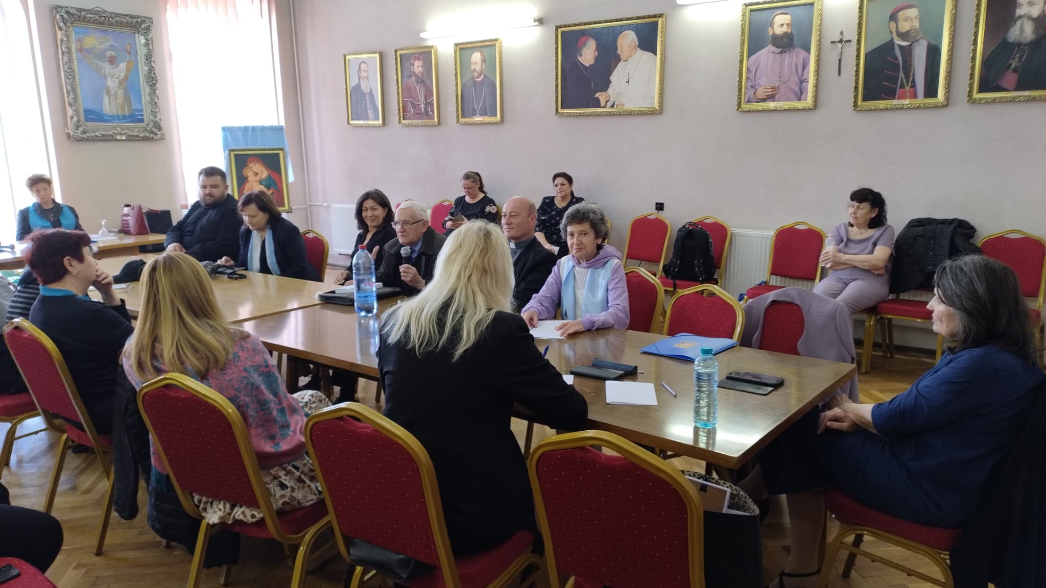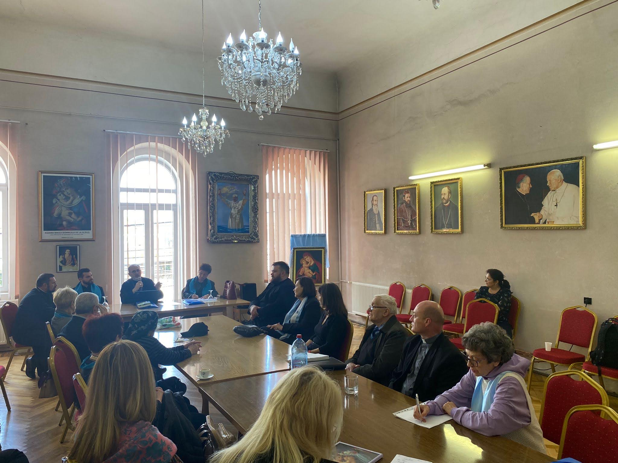 De la început, în cuvântul de întâmpinare, Presfinţia Sa ne-a provocat cu o întrebare: „Ce presupune misiunea şi rolul fiecăruia dintre noi, misiunea în general a Reuniunii Mariane şi anumite sarcini care ne privesc?. Un prim beneficiu al acestor întâlniri este comuniunea şi încurajarea, şi , neapărat din ceea ce posedăm fiecare dintre noi, fiecare venim cu o experienţă, cu harurile primite de la Dumnezeu, punerea în comun a experienţei fiecăruia dintre noi după acel model,,al celor cinci pâini şi doi peşti”. Cinci pâini sărace în mâinile Lui Isus, hrănesc neaşteptat, surprinzător. Acesta este şi rolul Întâlnirii noastre. Valoarea stă în a pune în mâinile Lui Dumnezeu şi reprimirea din mâinile Lui.”