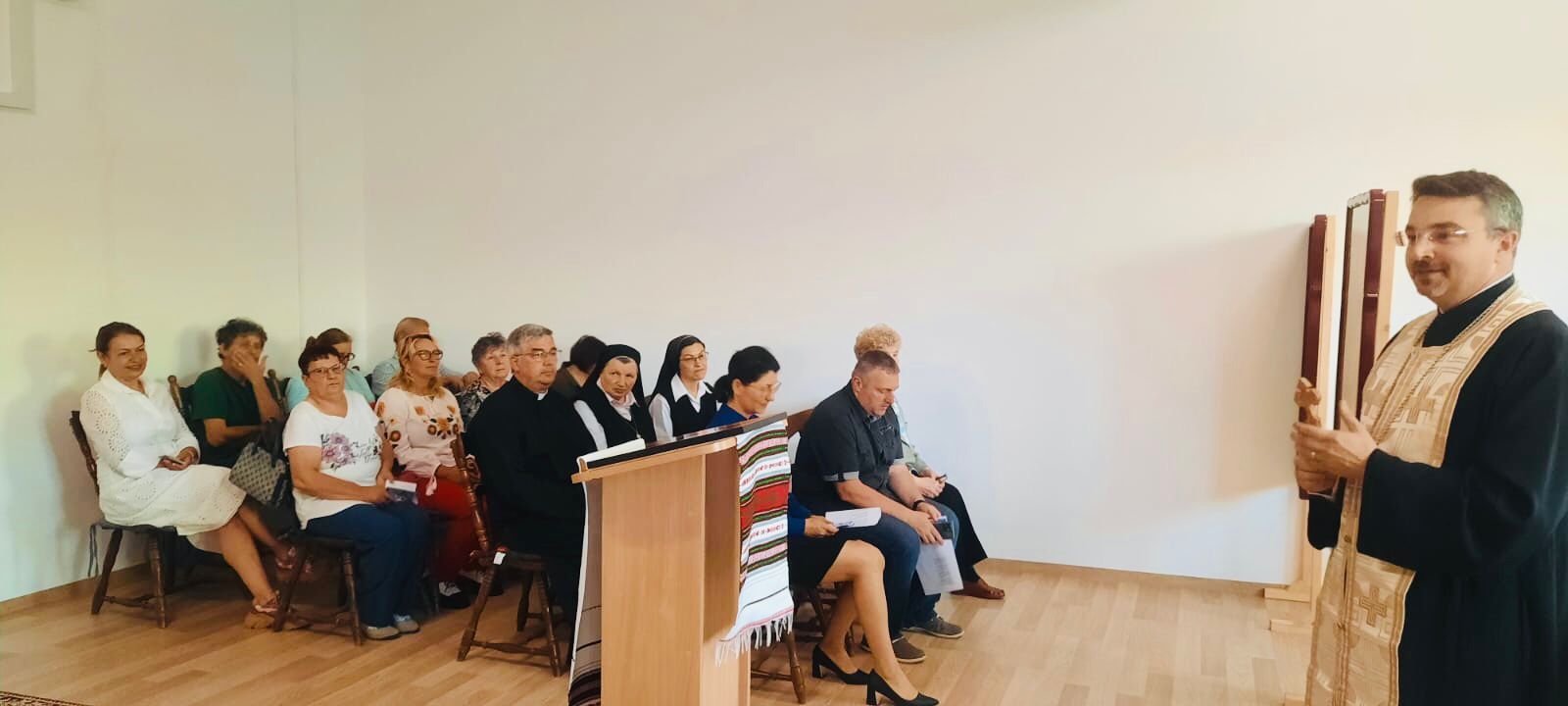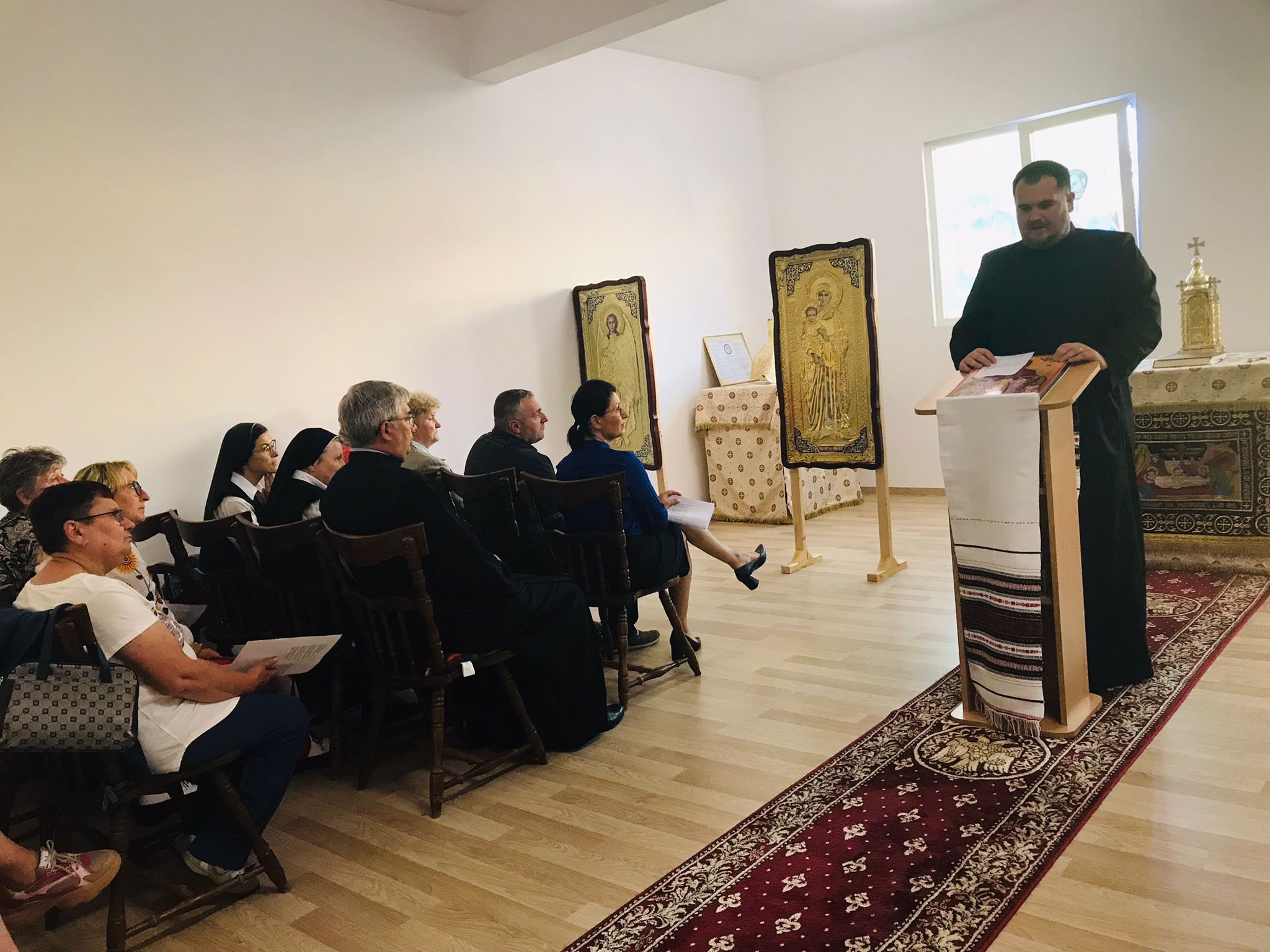 Duminică, 2 iunie a.c., în Sărbătoarea Fericiților Episcopi martiri Greco-Catolici s-a celebrat Sfânta și Dumnezeiasca Liturghie de la ora 10:00. Celebrantul principal al Jertfei Euharistice a fost părintele Alexandru Fiț, asistent spiritual al Liceului Greco-Catolic „Iuliu Maniu” și capelan al comunității surorilor C.M.D. din Oradea. Omilia a fost rostită de părintele Mirel-Mihai Demian, administratorul parohial al acestei comunități. Acesta a evidențiat profunzimea fragmentului evanghelic al întâlnirii dintre Hristos și femeia samarineancă, episod care nu este altceva decât o icoană a dorinței arzătoarea a lui Dumnezeu de a ieși în întâmpinarea umanității rănite de lipsa părtășiei cu El și de a o răscumpăra. Totodată, a subliniat rolul și importanța pe care fiecare persoană o are în Biserică în virtutea preoției baptismale.