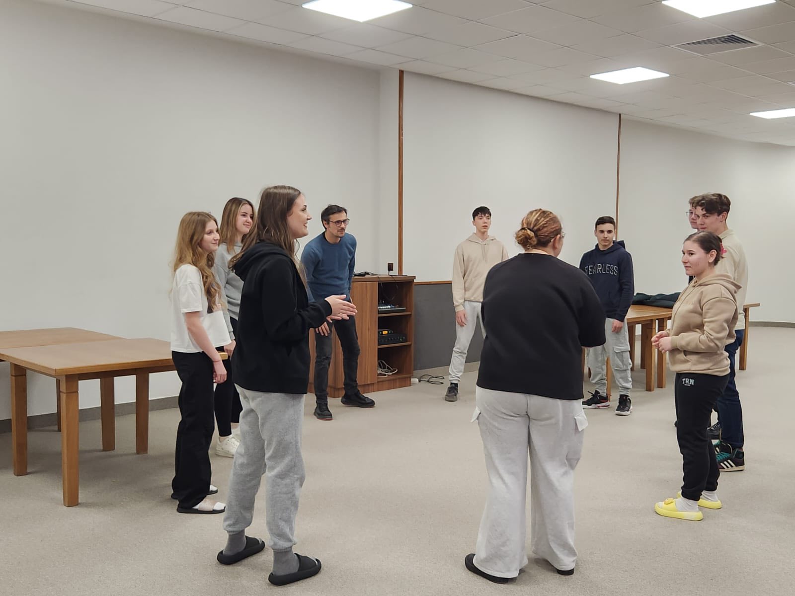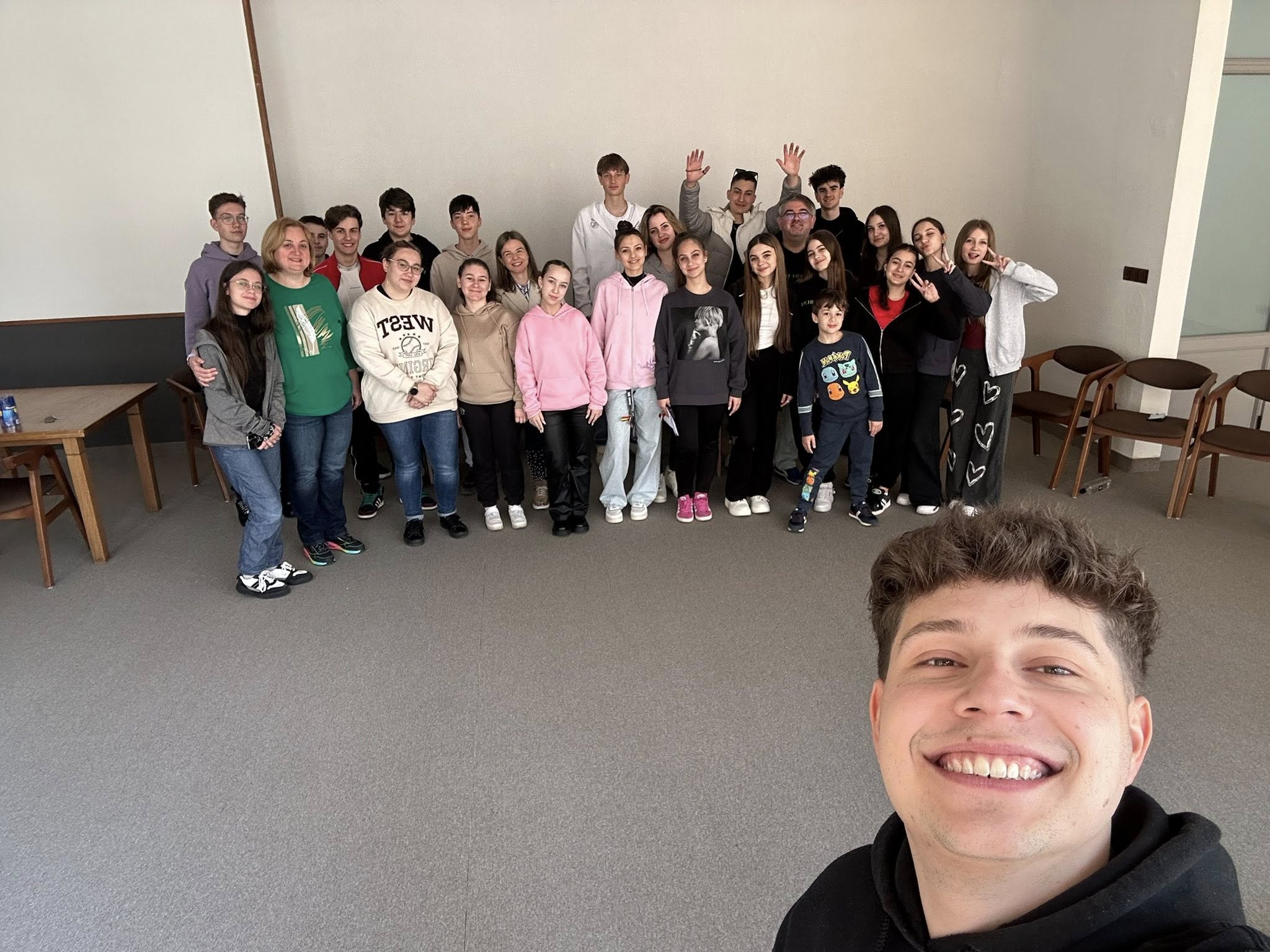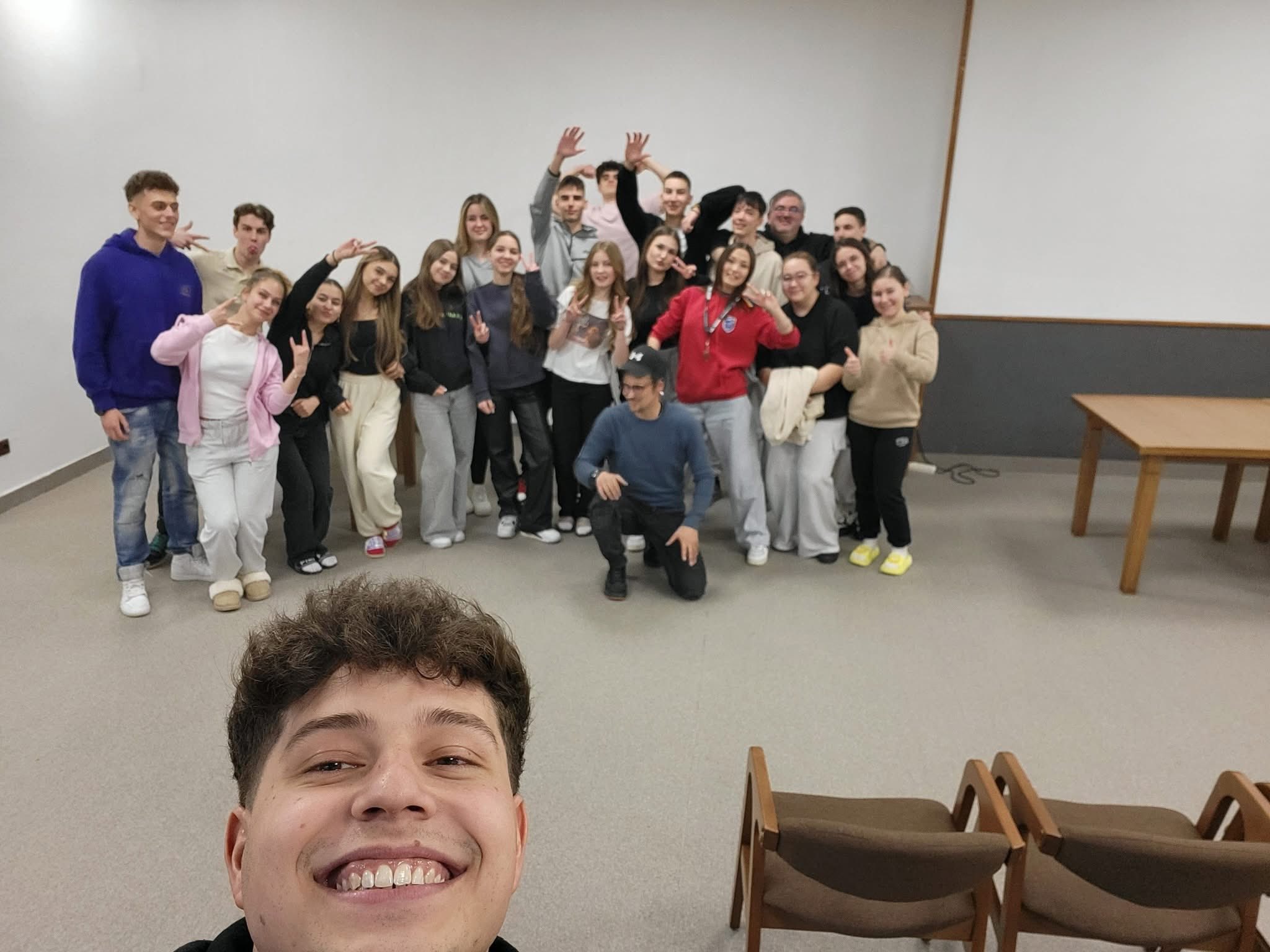 După ce ne-am cazat, am intrat direct în atmosferă cu o activitate specială alături de actorul Alin Stanciu, de la Okchallenge. Ne-a deschis porțile către lumea teatrului de improvizație, un spațiu unde imaginația, expresivitatea și lucrul în echipă s-au împletit în cele mai creative moduri. Prin jocuri dinamice și situații spontane, am învățat să ne exprimăm mai liber, să ne ascultăm unii pe alții și să avem curajul de a fi vulnerabili. A fost o experiență eliberatoare, care ne-a scos din zona de confort și ne-a unit ca grup.
