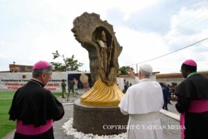 Întâlnindu-se cu studenții și profesorii prestigioasei instituții de învățământ din Africa Centrală, fondată în 1989 de Uniunea Conferințelor Episcopale din Africa Centrală, pontiful a spus: „Este o mare bucurie pentru mine să mă adresez dumneavoastră în cadrul acestei Universități Catolice din Africa Centrală, un loc de excelență pentru cercetare, transmiterea cunoașterii și formarea multor tineri. Îmi exprim recunoștința față de autoritățile academice pentru primirea călduroasă și pentru angajamentul lor constant în slujba educației.”